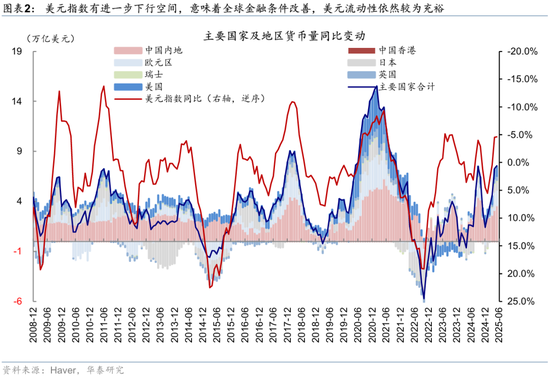 相比三季度美国可能的流动性收紧,展望看,全球流动性依然相当宽裕,而且可能进一步宽松。全球主要经济体广义货币增速今年以来持续上升,目前维持在7.8%的高位。往后看,美国金融去监管、联储继续降息、稳定币扩容、国债久期调整等多重因素助力下,美元指数有进一步下行空间,意味着全球金融条件改善,美元流动性依然较为充裕。亚洲货币尤其是人民币有进一步升值的空间,提高港股市场吸引力。