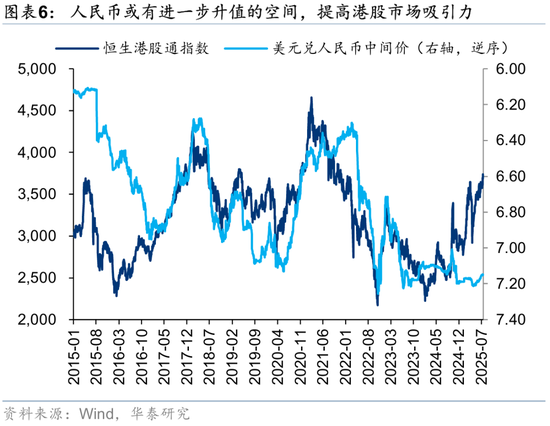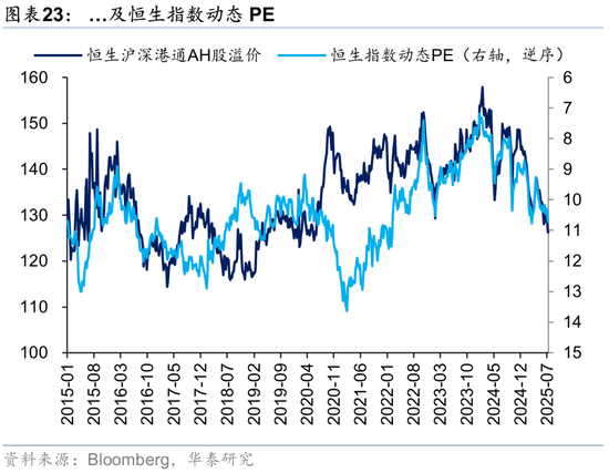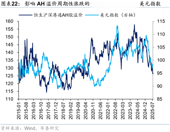 考虑到目前仅是美元走弱周期的开始,华泰宏观组估计美元被高估15-20%,对应DXY美元指数的均衡水平为79-83(《美元的衰落:空间及路径》,2025.6.3),中长期AH溢价还有进一步下行空间。